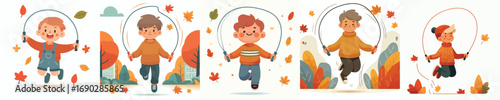 Fun and excitement of trampoline jumping with silhouettes of children in action. Playful and energetic images of jumping boys and girls for trampoline jumps, vector illustration isolated on background