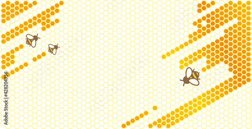 Bee honeycomb banner template with yellow and orange hexagonal cells. Vector honey texture background