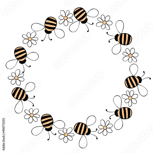 Cute honey bees round frame for your design. Kawaii vector illustration