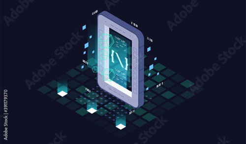 Web development, programming concept. Technology process of software development. Monitoring and testing of the digital process. Isometric vector illustration. 3D