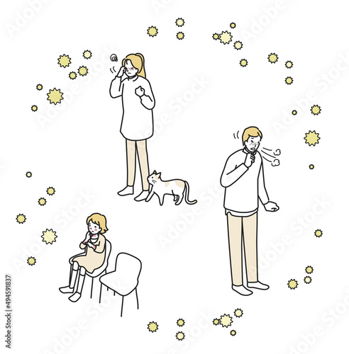 花粉症の症状が出ている女性のイラストセット