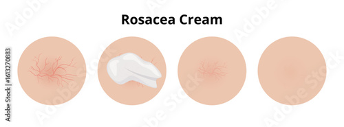 Cream treating rosacea, before and after effect