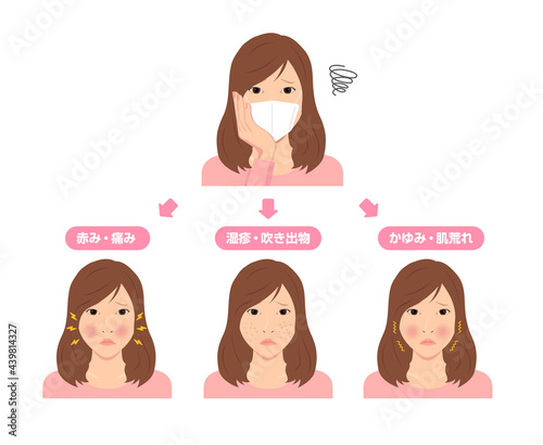 マスク着用による肌トラブルのイラスト / スキンケア (新型コロナウイルス)