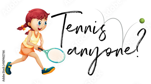 Silhouette of tennis player. Girl playing tennis. Children's tennis. Vector illustration.