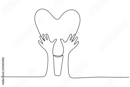 World kindness day in november line art poster or banner design ideas. Continuous line art of hands making heart or holding heart. Celebrate kindness. Spread positivity and tolerant ideologies art.