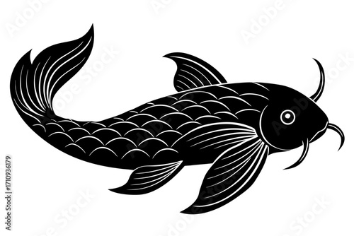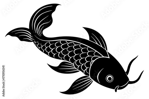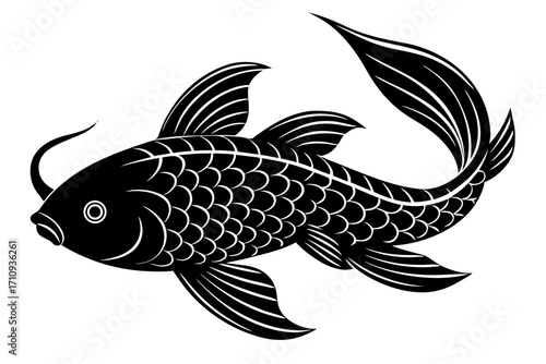 Koi Fish Silhouette Logo, Black SVG Vector Carp Icon Illustration