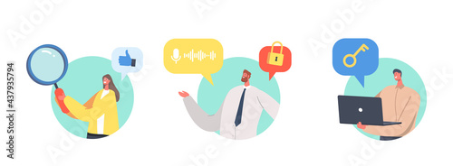 People give ratings and reviews. Customer reviews rating. Know your customer. Client's choice. Flat style. Vector illustration.