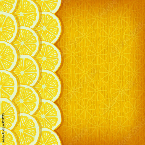 Bright lemon slices vector background. Summer bright tropical fruit pattern.