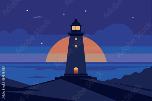 Lighthouse tower illuminating the vast sky and rugged sea landscape, a beacon of architecture against nature's grandeur