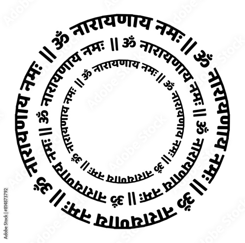 Lord Gayatri mantra round tyography in Devanagari letters. The mantra is a declaration of appreciation, to both the nurturing sun and the Divine.