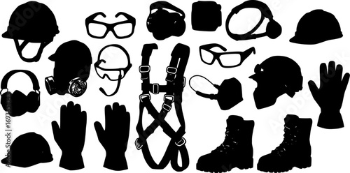Construction Equipment and Tools - A Silhouette Vector Illustration.