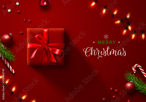 Merry Christmas. Card. Happy New Year. Red Background. C
