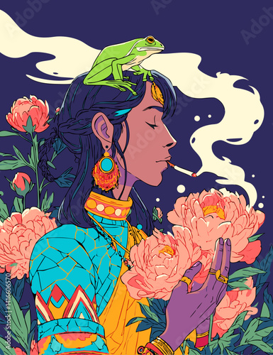 Elegant lotus flower pattern with a face, creating a spiritual, earthy vibe, perfect for yoga studios, spas, or mindful retreats background