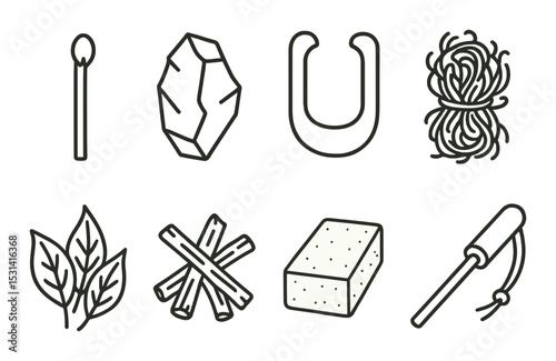 Hand-drawn Black and White Line Art Icons of Water Conservation and Usage