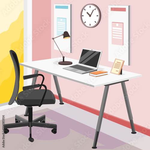 vector illustration of office desk with computer