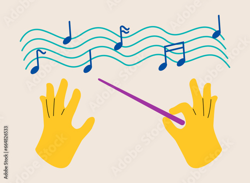 Orchestral Maestro: A silhouette of a distinguished conductor in a sharp suit, poised with baton in hand and directing with purpose. Capturing the essence of leadership and artistic control.