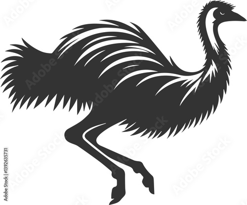 emu, silhouette, high contrast, minimalist, black and white, digital art, illustration