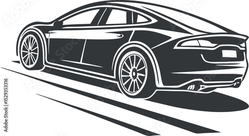 Cute black and white vector illustration of three little kids riding tiny racing cars, showing playful competition, joyful expressions, fun motion, and a charming cartoon race atmosphere.