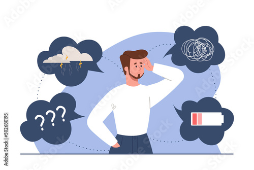 Stressed figure with chaotic mind and overwhelmed body in minimalistic design