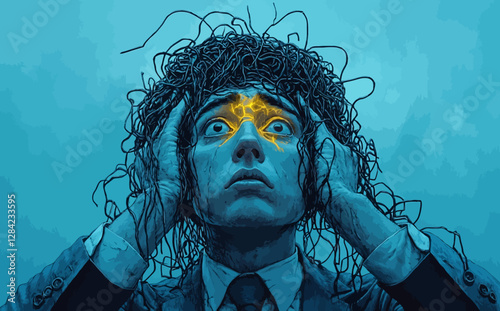 Illustration depicting a frustrated individual experiencing mental turmoil