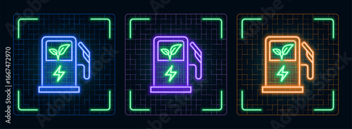 Biofuel Gas Station Icons:  Multiple Color Options, Clean Energy Symbol, Flat Design, Sustainable Fuel, Eco-Friendly, Renewable Resource, Vector Illustration.