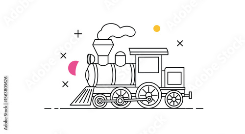 Whimsical Vintage Steam Locomotive Illustration with Smoke and Decorative Elements