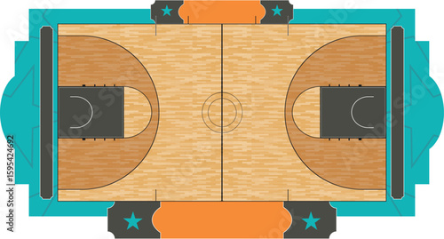 Futuristic Street Basketball Court Design with Star Accents and Teal-Orange Theme