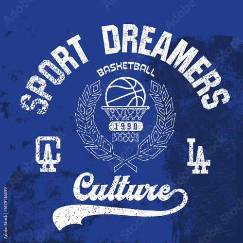 Sport Dreamers Basketball Culture slogan text-typography vintage grunge t-shirt tee sweatshirt print vector graphics. Grunge USA quality stamp vector illustration,