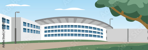 Stadium gate illustration. Stadium building. Football arena. Colosseum, Park, Circus, Ballpark, Arena, Gymnasium, Gym, Dome. Gymnasium gate. Stadium entrance.