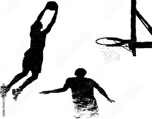 Dynamic basketball scene in grunge style for urban art design