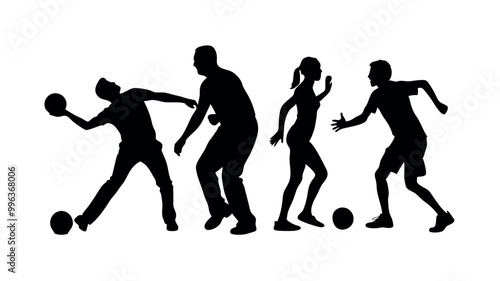 いろいろなスポーツ(球技)のアスリートたちシルエットセット