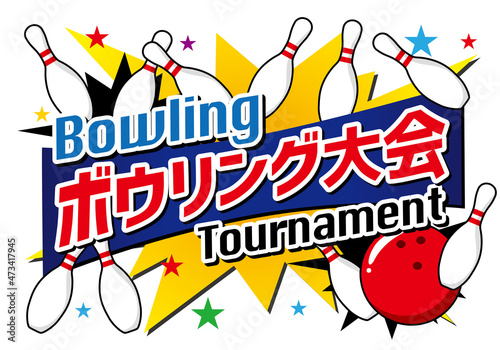 ボウリングをする男の子と女の子 ボウリングピンとボール イラスト