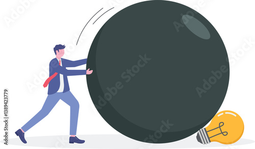 Man throwing ball playing bowling. Guy throws ball on lane into tenpins and skittles. Recreation and hobby vector illustration. Night entertainment, fun leisure activity