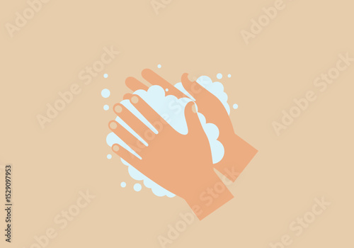 Illustration of hands being washed with soap and lather, promoting good hygiene and prevention of germs, isolated with copy space.
