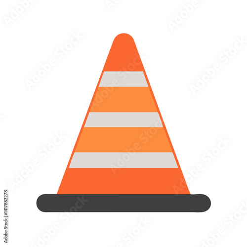 An isometric illustration of a bright orange traffic cone with white reflective stripes casting a shadow on a white background.