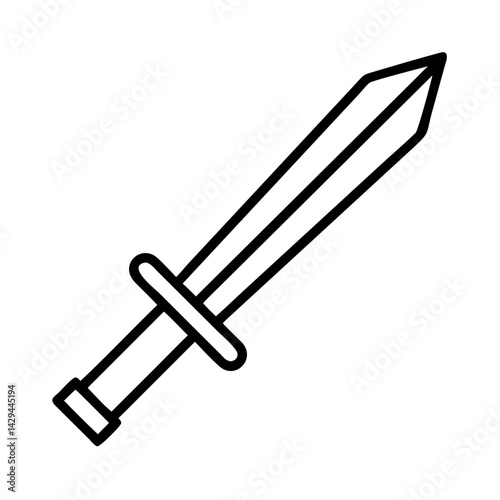 Simple black and white line drawing of a gladius sword on a white background