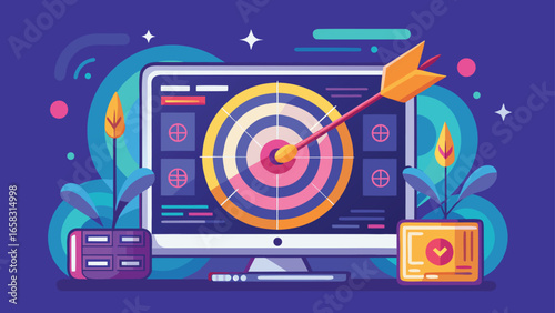 Dart hitting target bullseye achieving goals and aspirations precision and focus on vector illustration