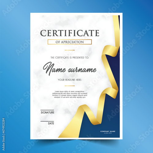 elegant certificate with golden ribbon template with abstract shapes vector illustration