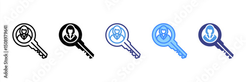 Key Person Icon Set Multiple Style. Designed In Outline, Blue, Glyph, Dual Tone
