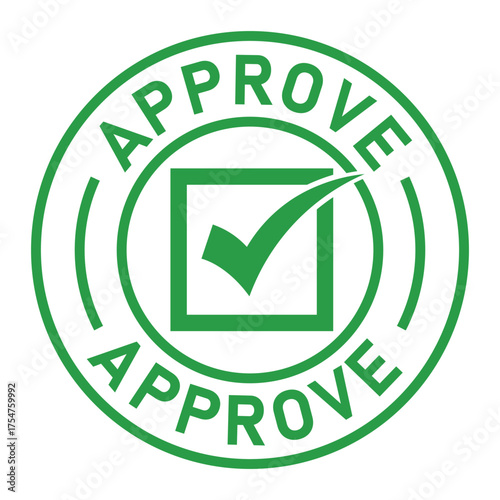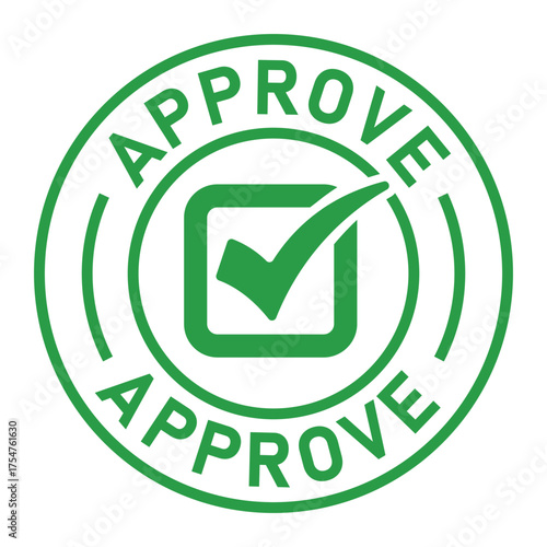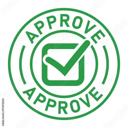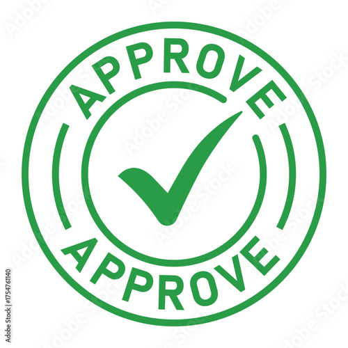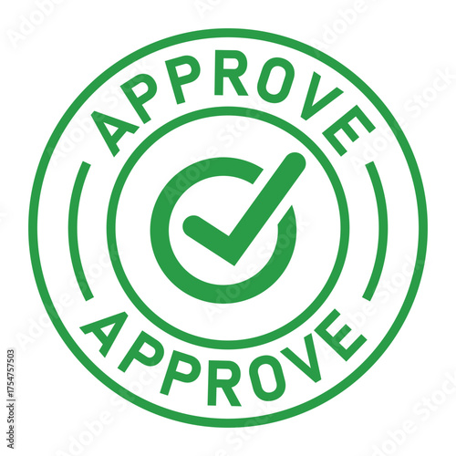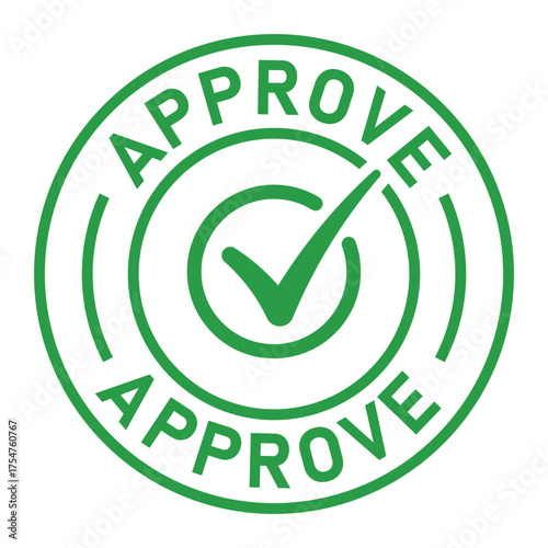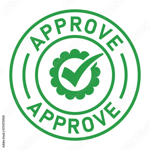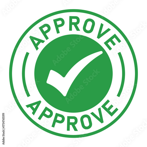 Green circular approval stamp graphic with bold “APPROVE” text and central checkmark icon. Ideal for confirmation, validation, business forms, and digital authorization designs.