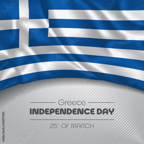 Banner or poster of Greece independence day celebration. Waving flag. Vector illustration.