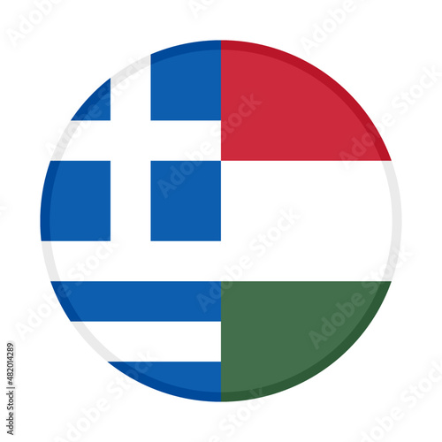 England versus Greece - Vector banner for soccer competition. Illustration with round national flags and football ball.