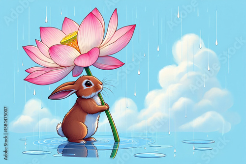 Gentle gradient of Sunset Sky, fluffy Clouds floating over layered Waters