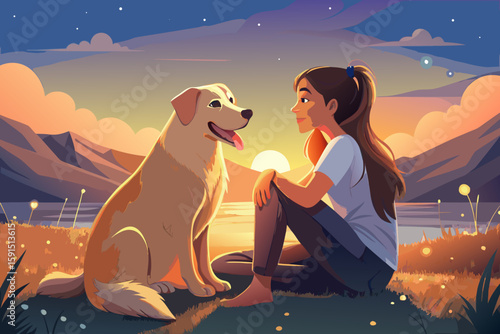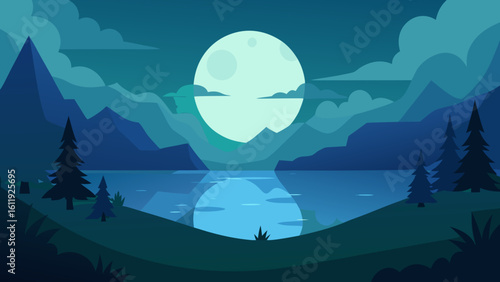 Dreamy Evening Landscape with Starry Sky Peaceful Nature Scene with Soft Colors and Minimalist Design for Backgrounds and Web Designs