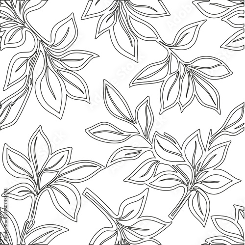 Delicate Line vector Art Botanical Branch with Shaded Leaves