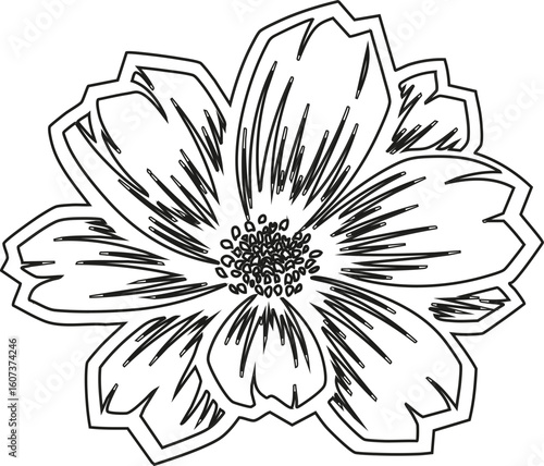 Elegant vintage-style flower illustration with detailed stippling and soft colors