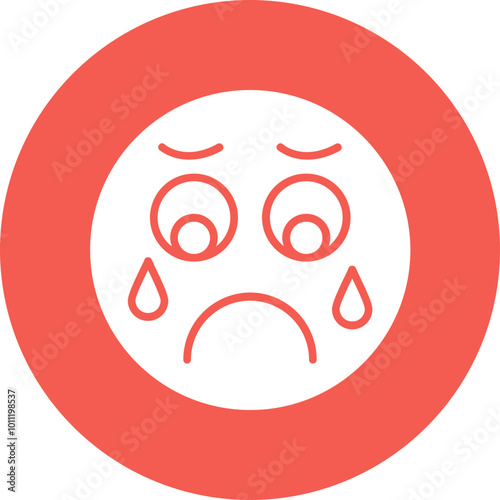 Vector illustration of a cartoon mouse face with a sad expression, crying with a tear in his eye