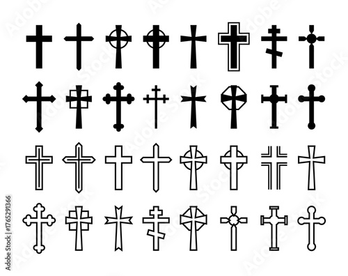 Christian cross symbols set representing faith and spirituality