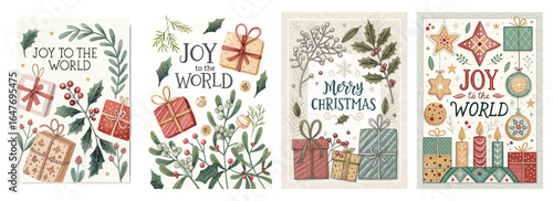 Modern Merry Christmas Postcard Collection Set: Holiday Greetings Grunge Minimal Vector Art Colorful Vibrant