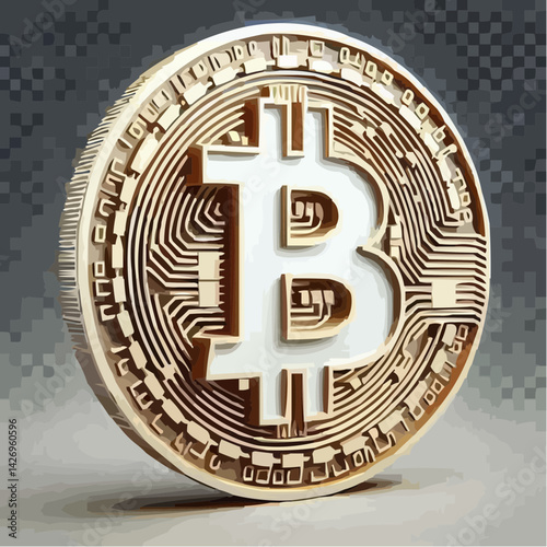 Bitcoin, abstract silver symbol of internet money. Digital Crypto currency symbol.